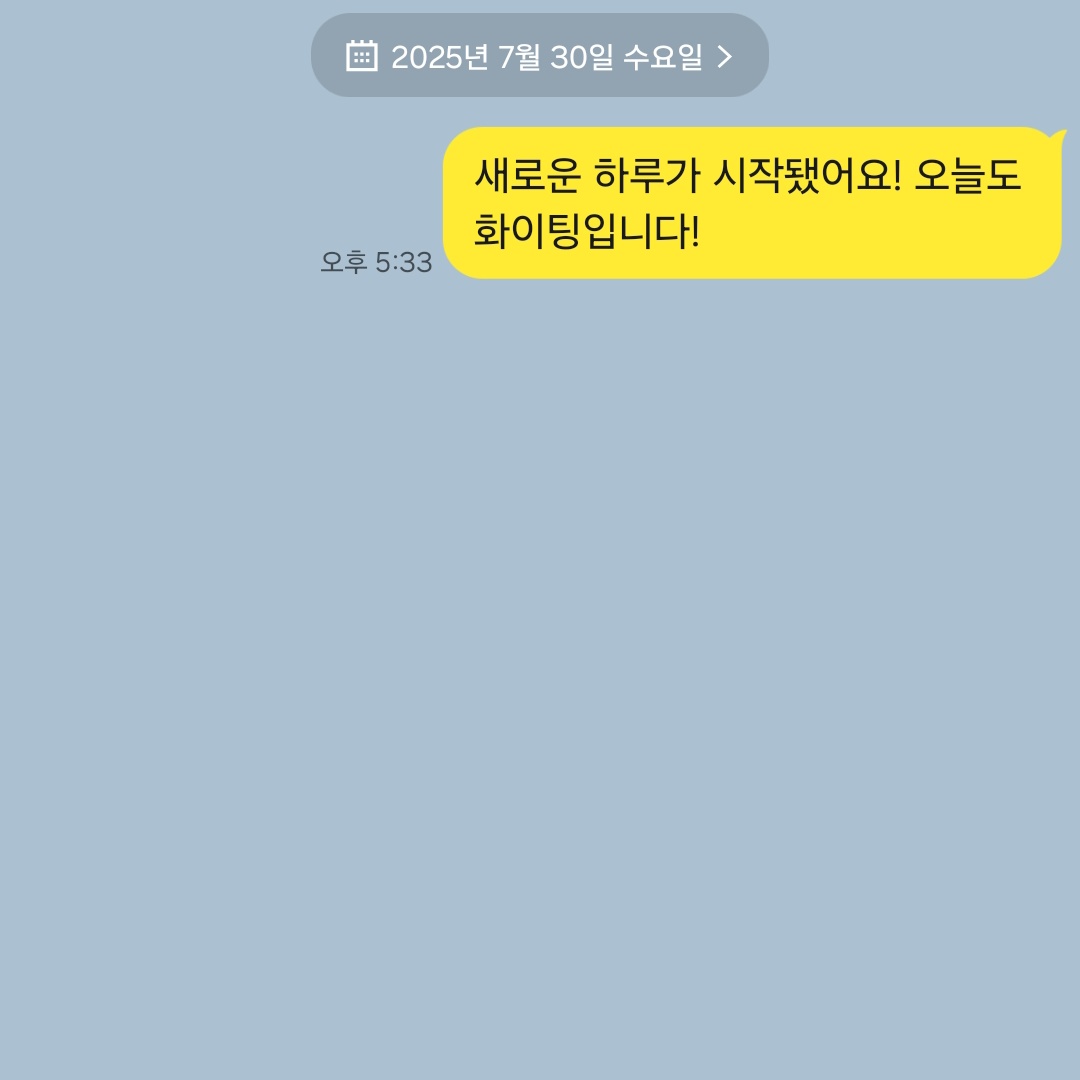 - 새로운 하루가 시작됐어요! 오늘도 화이팅입니다!