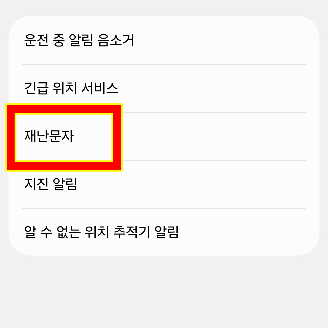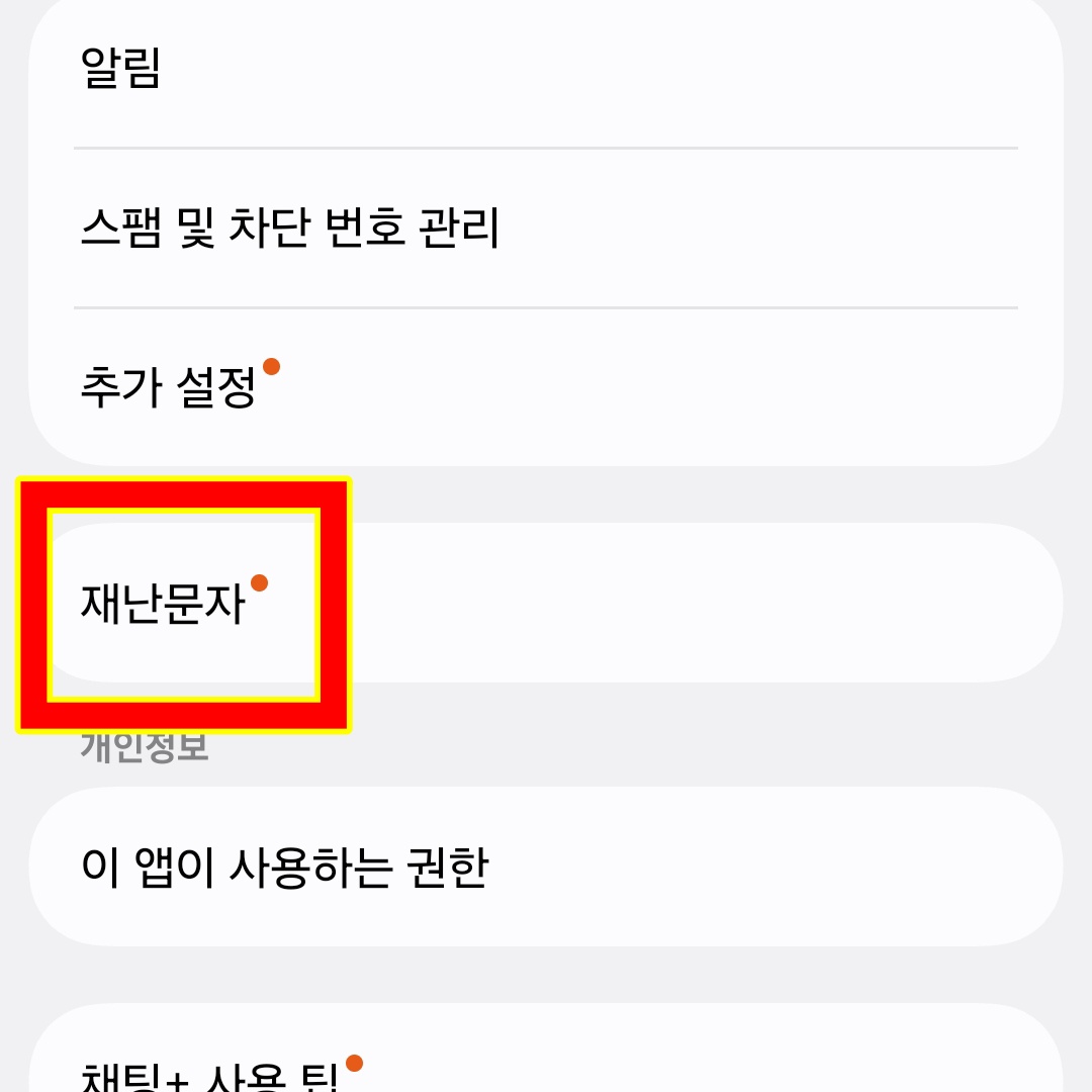 4. '재난문자'를 선택합니다