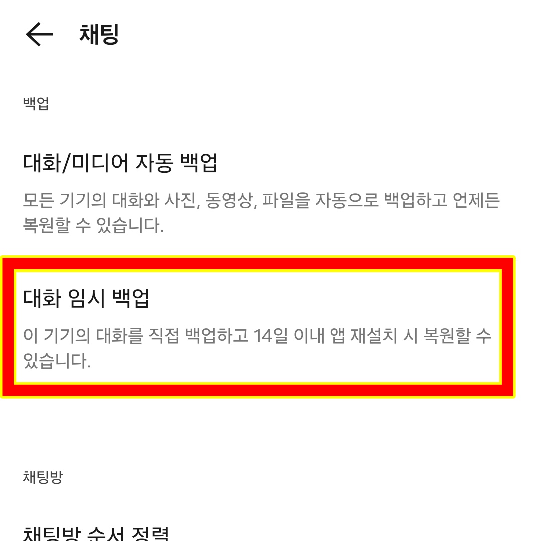 - [설정(⚙️)] → [채팅] → [대화 백업]