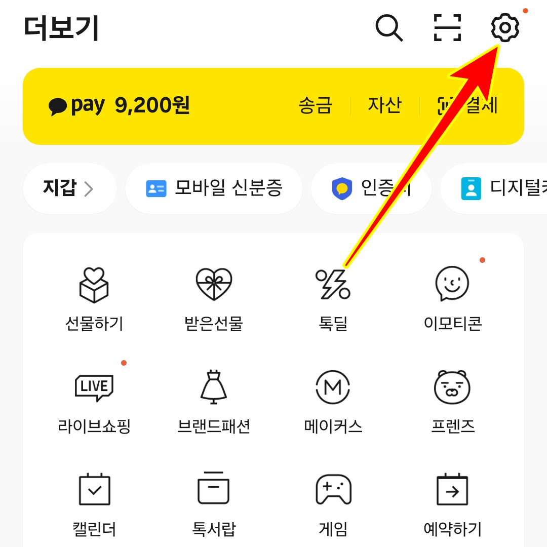 - 카카오톡 앱 실행 → 우측 하단 [더보기(...)] 클릭