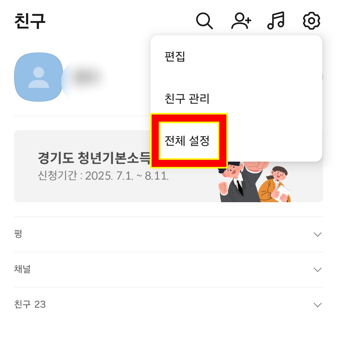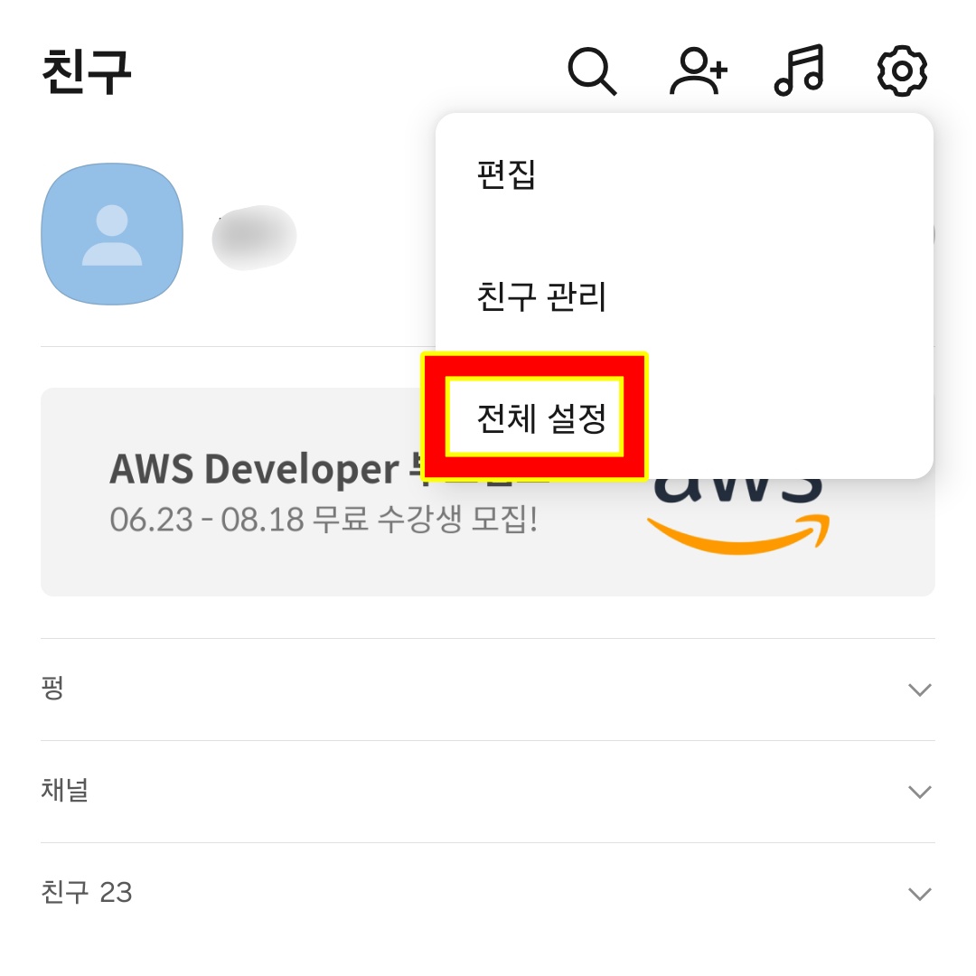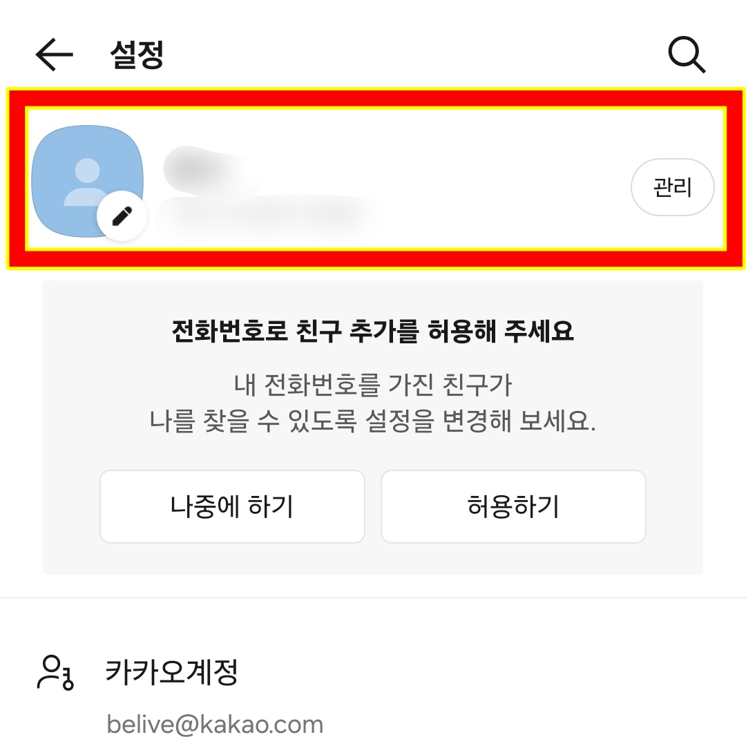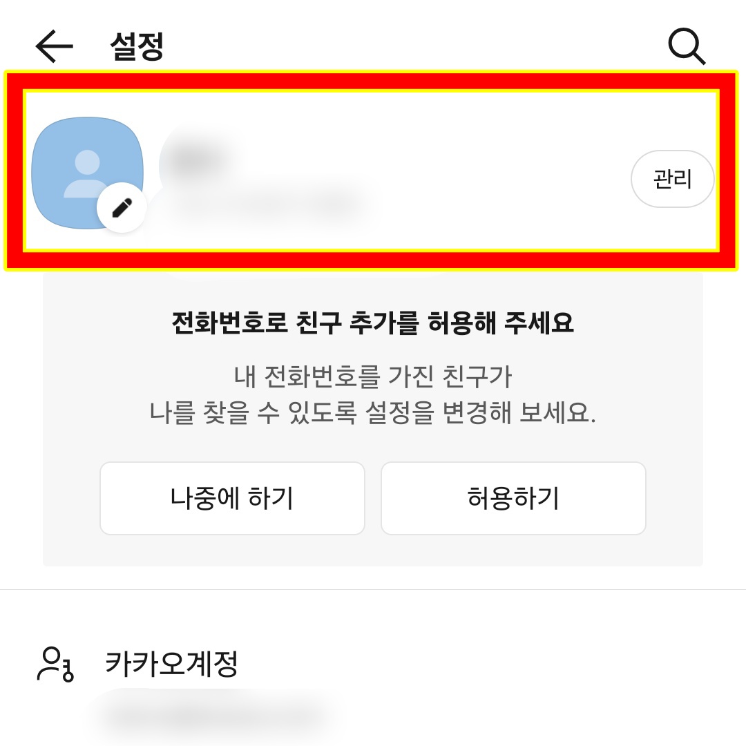 - 카카오톡 > 친구 > 내 프로필 > 설정