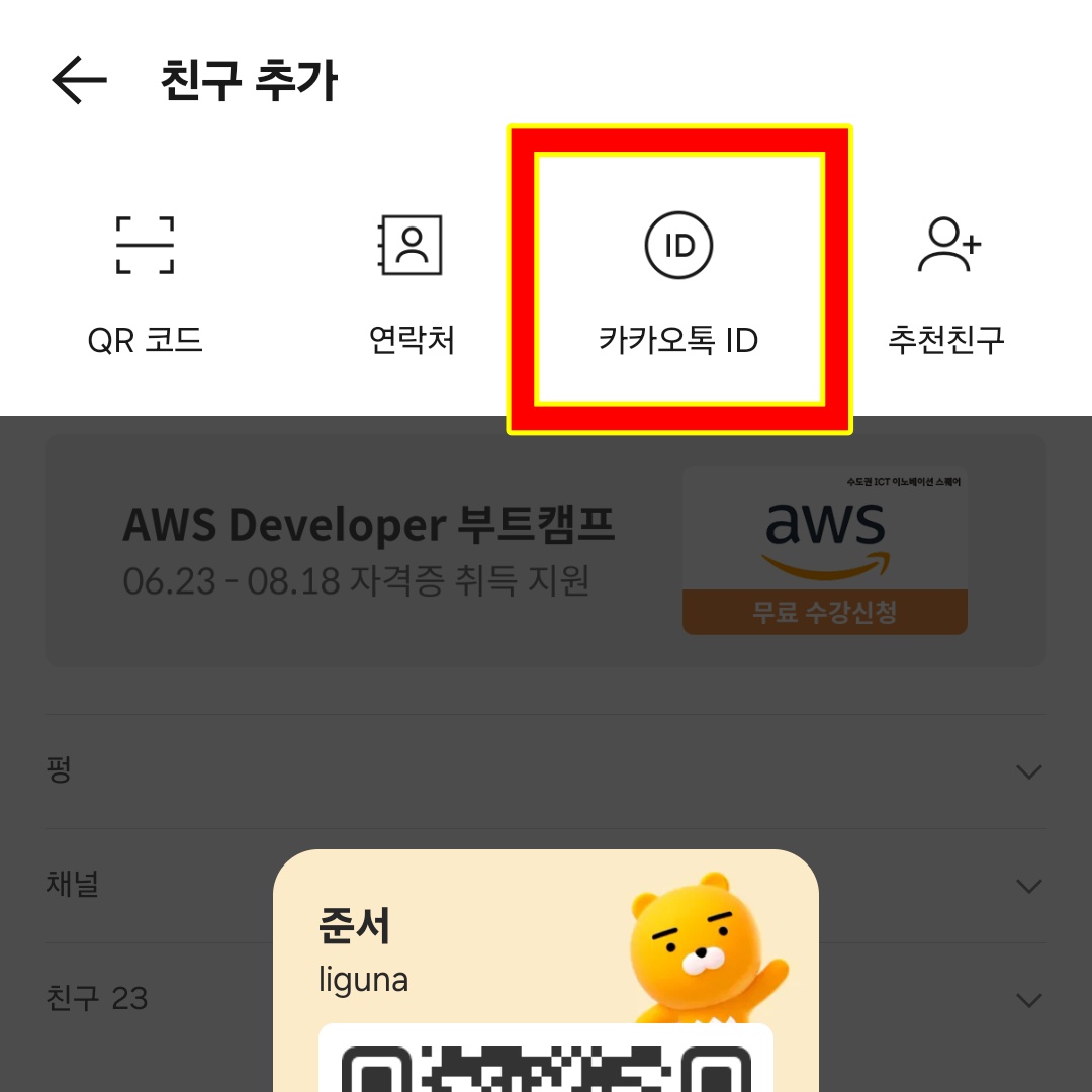 - '카카오톡 ID' 클릭
