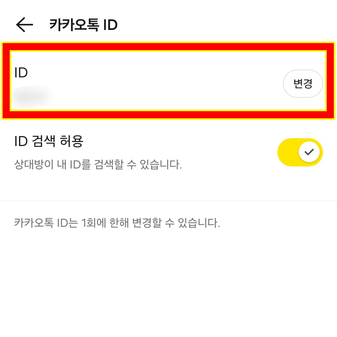 아이디를 만들었다면 반드시 'ID 검색 허용' 설정을 활성화해야 다른 사람이 나를 찾을 수 있습니다.