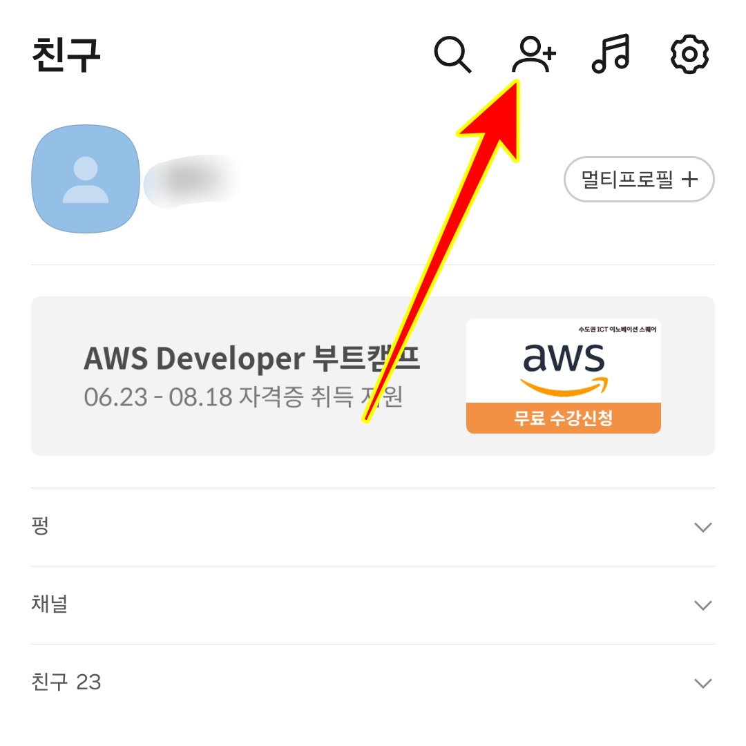 - 카카오톡 상단 사람+ 아이콘 클릭