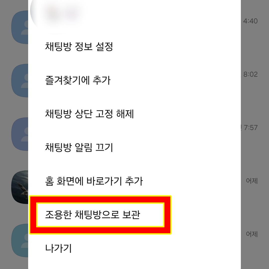 조용한 채팅방 해제하는 방법