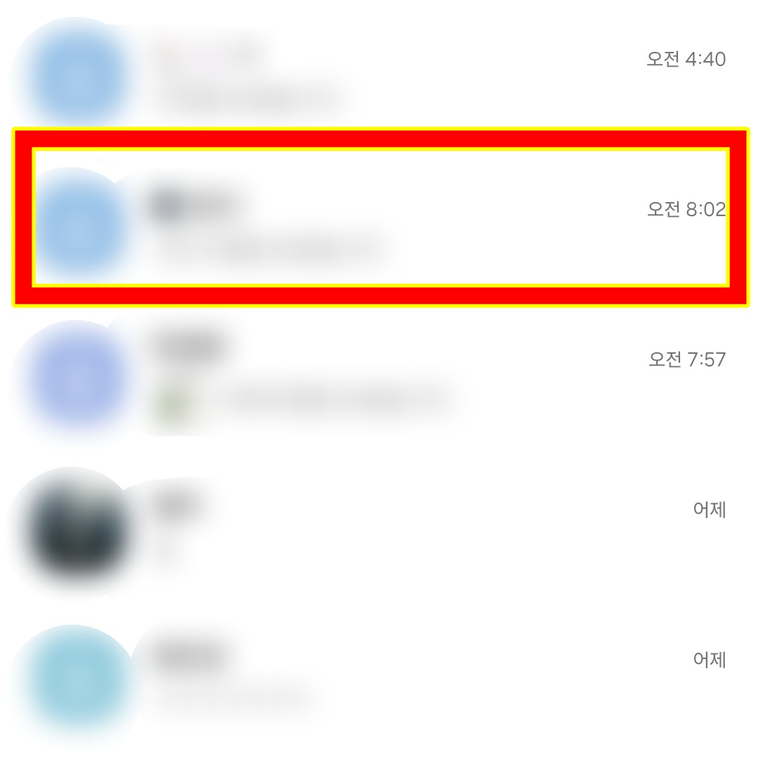 숨겨진 조용한 채팅방을 다시 보려면 채팅 목록을 아래로 당겨주면 됩니다. 인터넷 페이지 새로고침처럼 아래로 당기는 동작으로 간단하게 다시 표시할 수 있습니다.