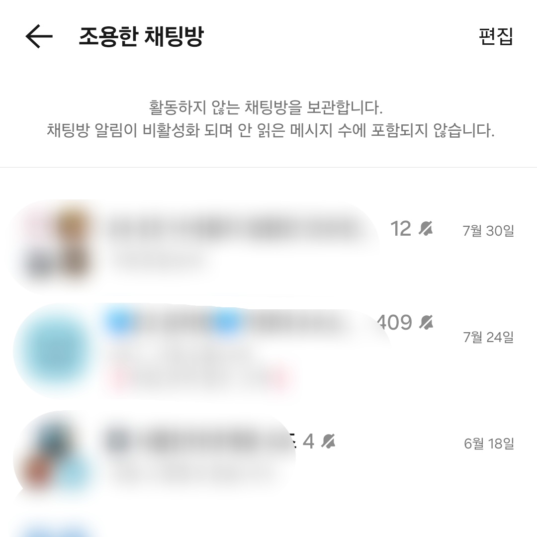- 조용한 채팅방을 클릭하면 보관된 모든 채팅방을 확인할 수 있습니다