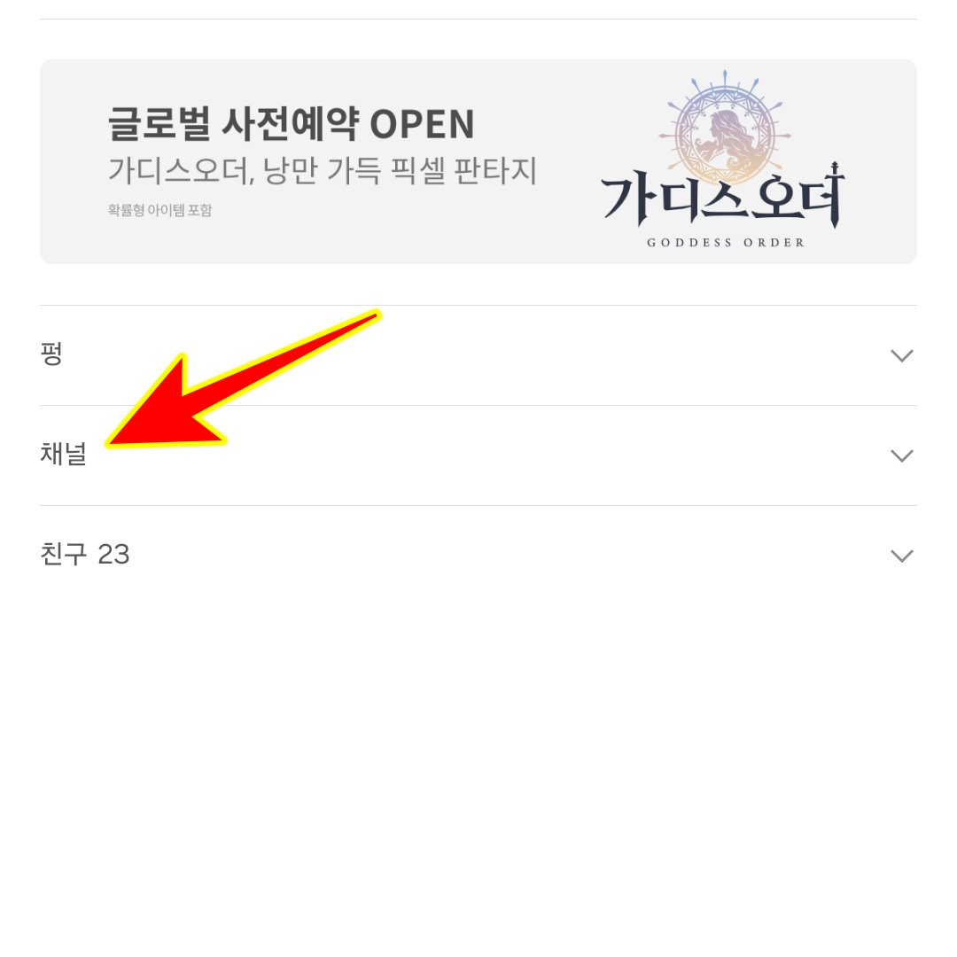 3. 친구 목록에서 '채널' 섹션을 찾습니다