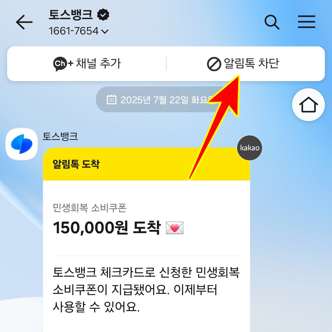 2. 채팅방 상단에 '알림톡 차단' 버튼이 표시됩니다