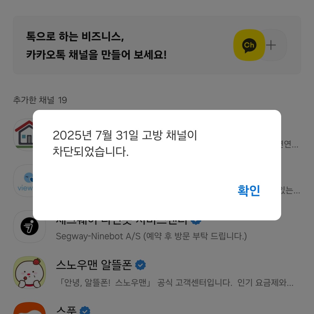 A: 채널 차단이 제대로 되지 않았거나 알림톡 형태로 오는 메시지일 가능성이 있습니다. 채널 차단 상태를 다시 확인하고, 알림톡 차단도 함께 설정해보세요.
