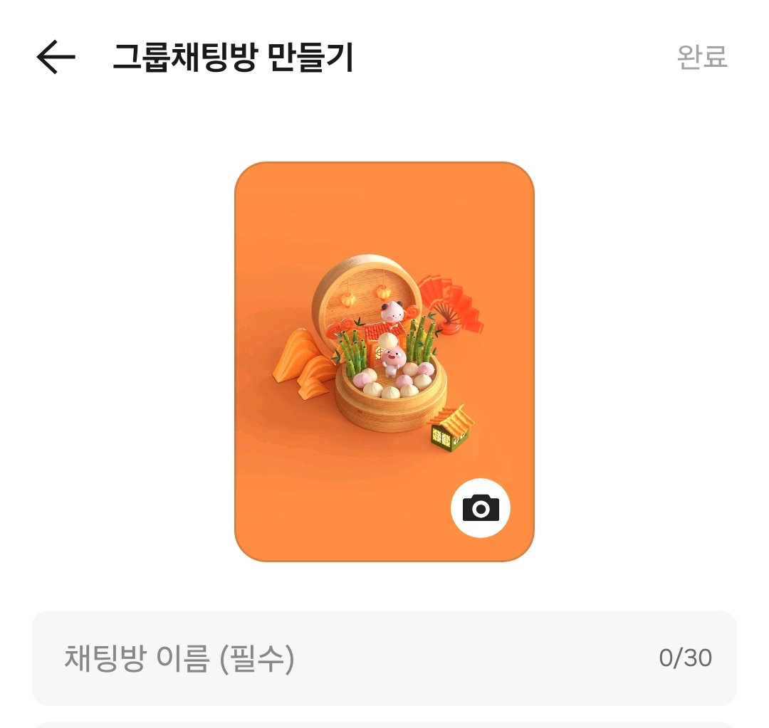 - 그룹채팅방 정보 설정 화면에서 채팅방 이름과 이미지를 설정합니다