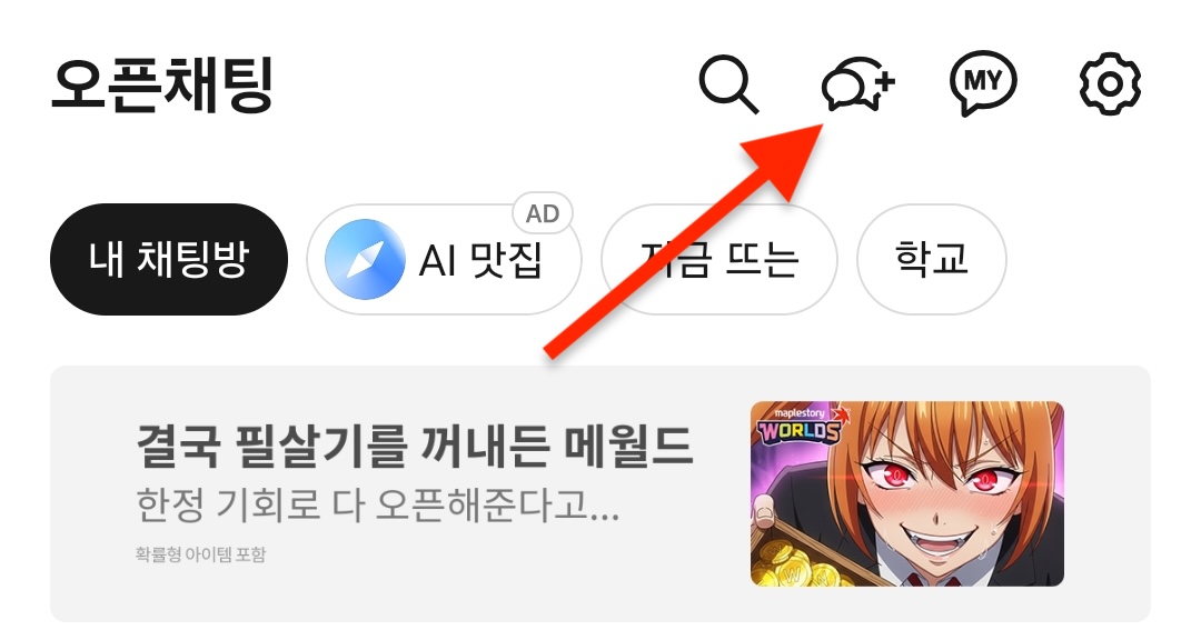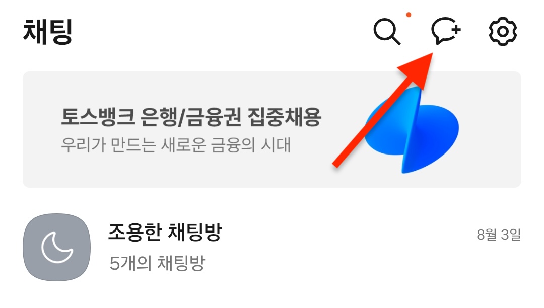 - 오른쪽 상단의 '+' 모양 말풍선 아이콘을 클릭합니다