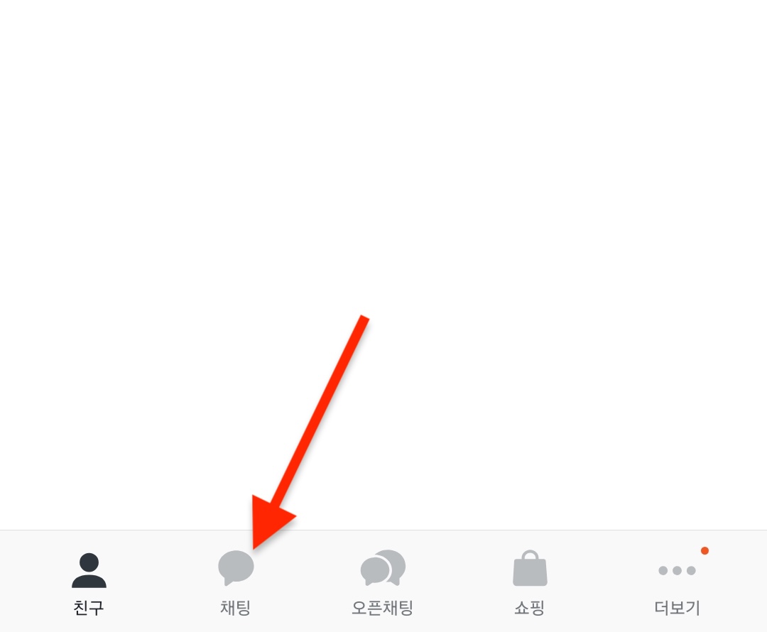 - 카카오톡 앱을 실행한 후 화면 하단의 '채팅' 탭을 선택합니다