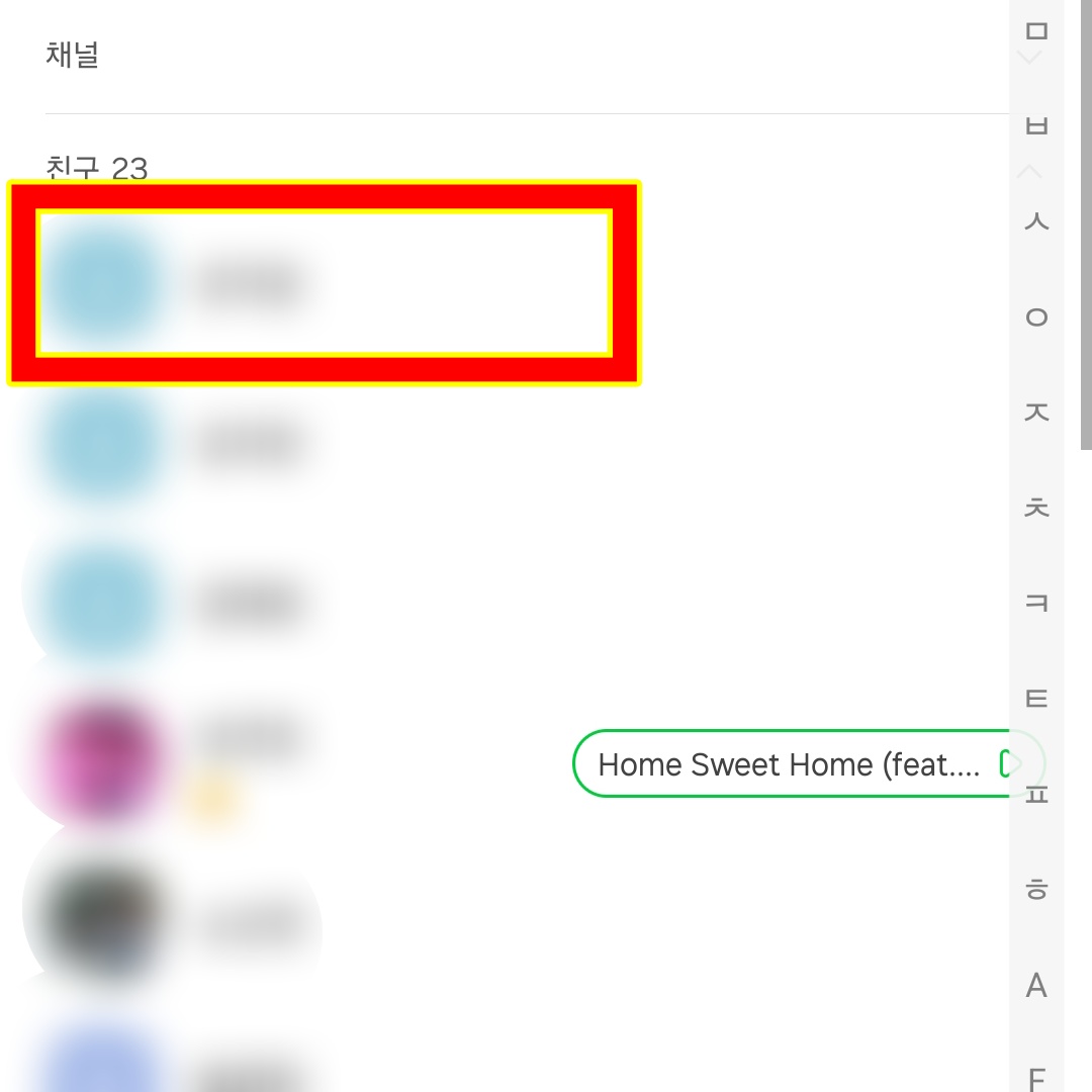 - 왼쪽 친구 목록에서 차단할 친구를 찾습니다